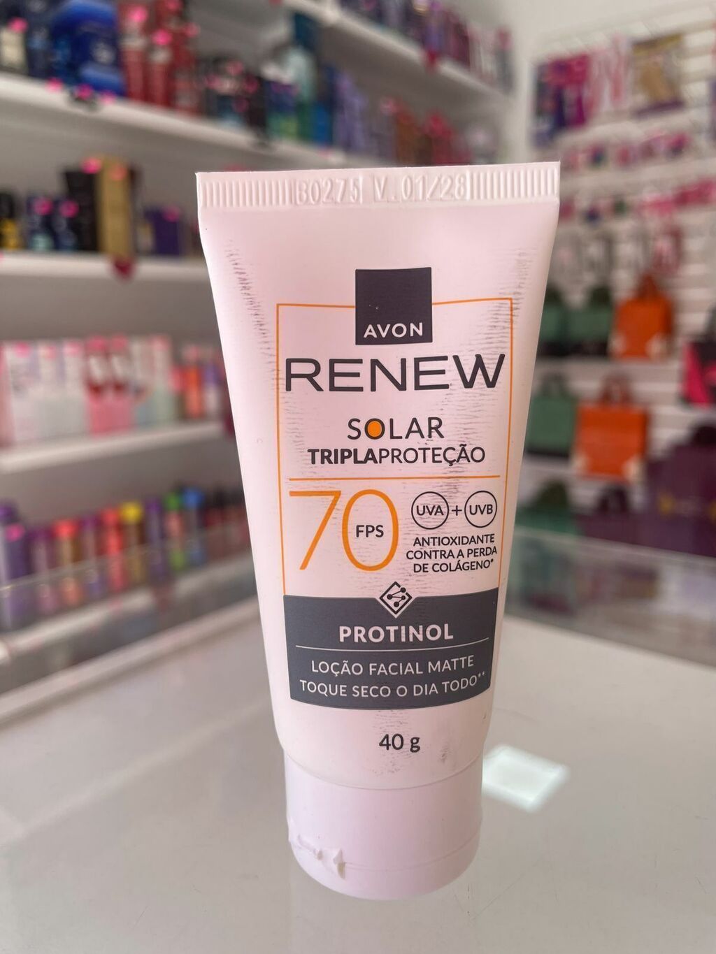 Renew Solar Tripla proteção, protege a sua pele dos raios UVA/UVB, antioxidante e contra a perda de colágeno.